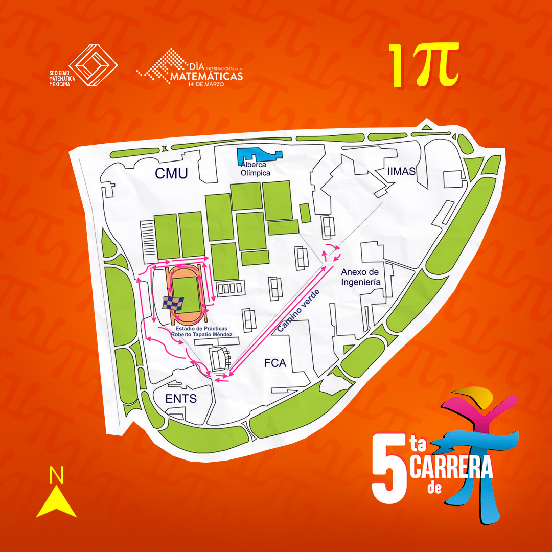 Este año la Sociedad Matemática Mexicana organiza su quinta carrera recreativa para conmemorar el Día de π. En esta ocasión se llevará a cabo el domingo 22 de marzo en las instalaciones de Ciudad Universitaria y, como el año pasado, en distintas Ciudades de la República Mexicana (este año se suma más).